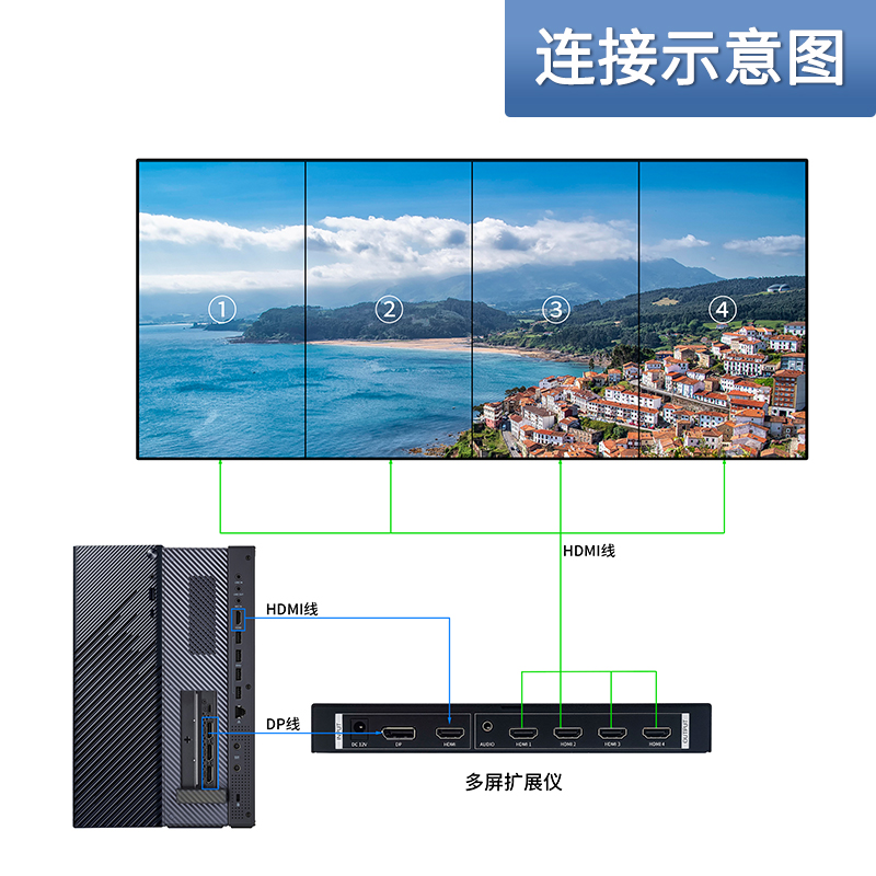 多屏宝是专门针对小规模LCD液晶拼接屏、多通道投影融合等场景需求开发的一款工业级高性能产品,采用HDMI/DP输入接口,HDMI输出接口。广泛应用于超高分辨率桌面应用,LCD多屏拼接,多通道投影,广告墙,视频监控等工程显示。