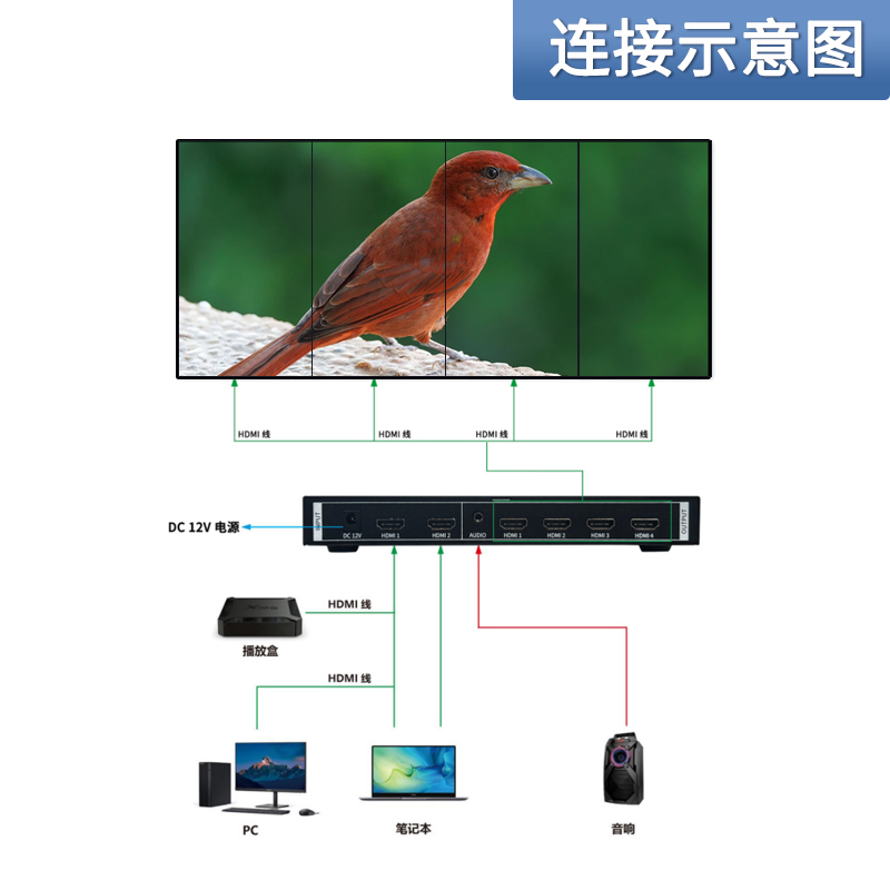 此款4K电视机拼接盒为家庭、办公室、数字娱乐、中心、会议室、学校、KTV和其它音视频场景使用提供了解决方案。